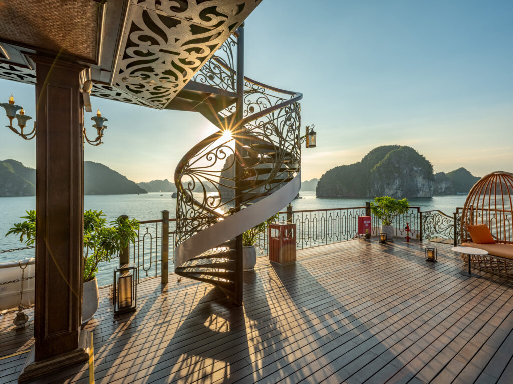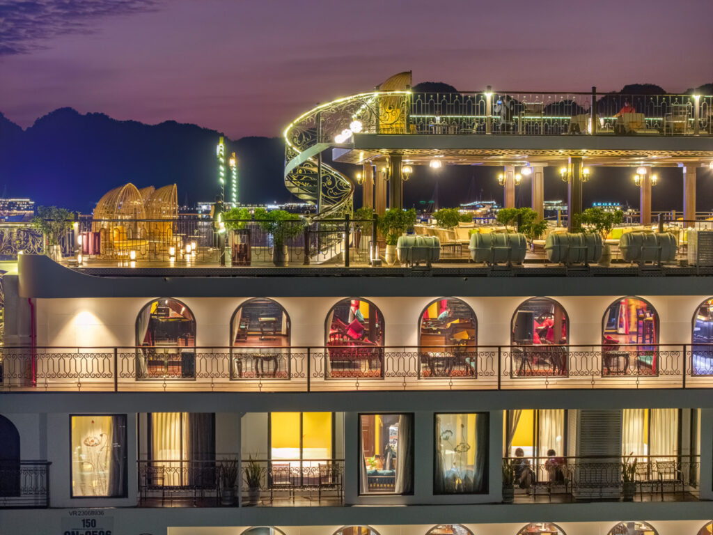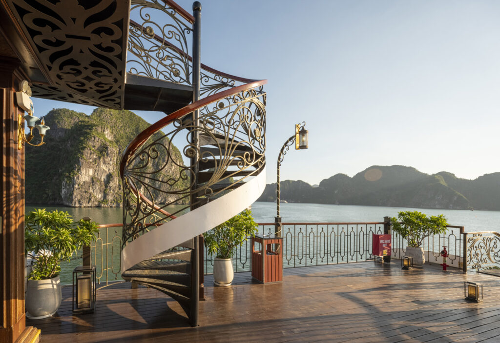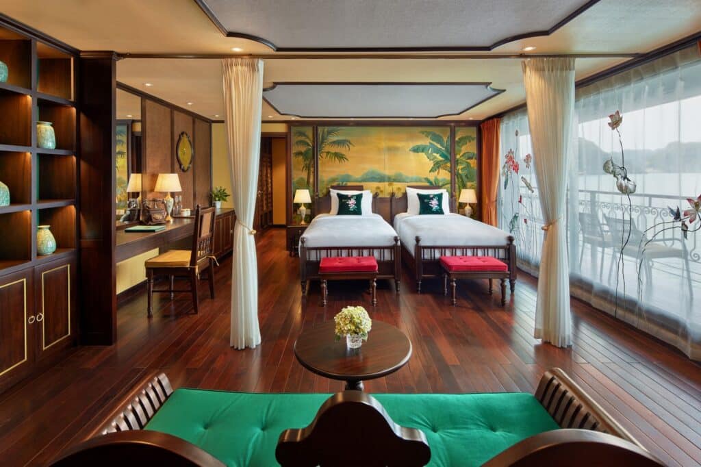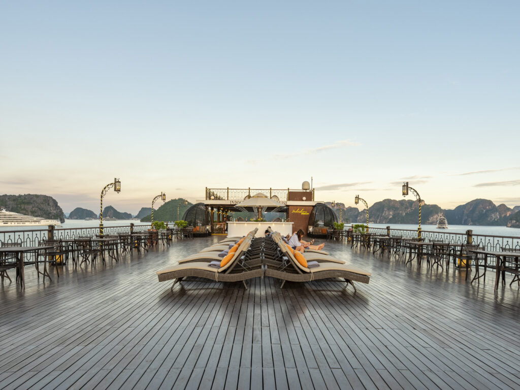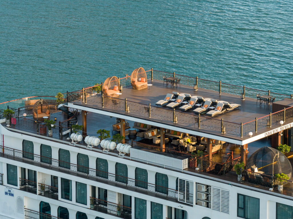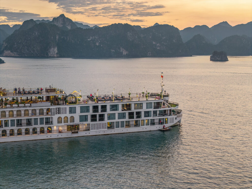 由越南最受尊敬的邮轮运营商之一运营, 印度支那高级37 重新定义五星级邮轮体验 下龙湾 它的 独特的印度支那(东印度支那)设计, 手工艺术, 和 宽敞、以客人为中心的布局. 这艘精品船艇——仅配备 37间布置典雅的客舱, 全部 私人阳台—为眼光独到的旅行者提供亲密、沉浸式的文化体验,让他们在联合国教科文组织世界遗产石灰岩喀斯特地貌中既能感受到宏伟壮丽,又能体验宁静祥和。.