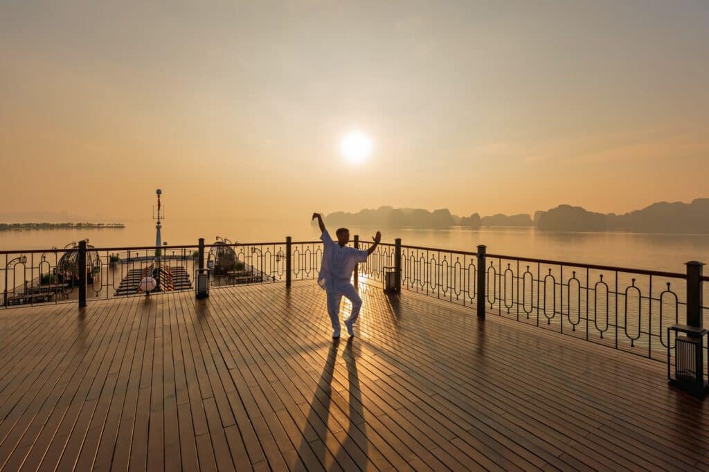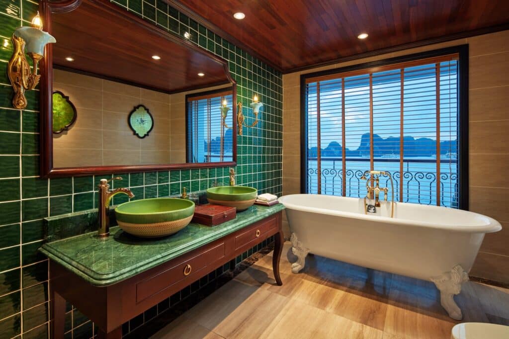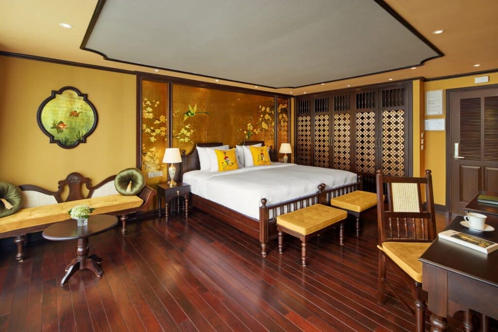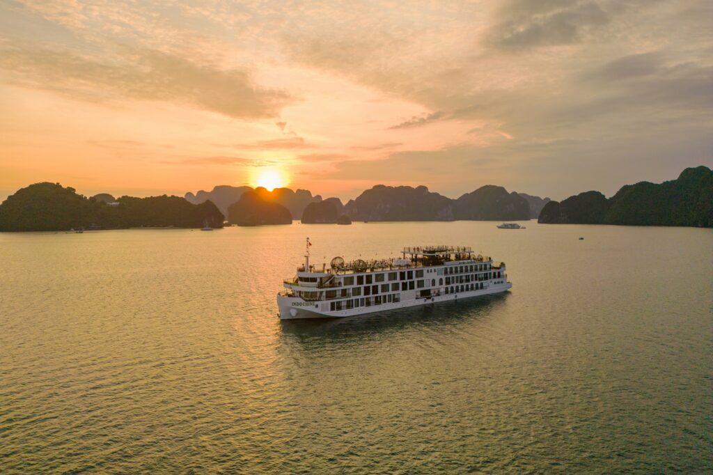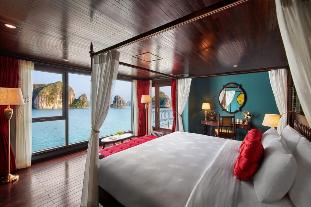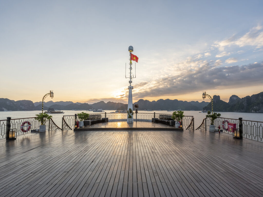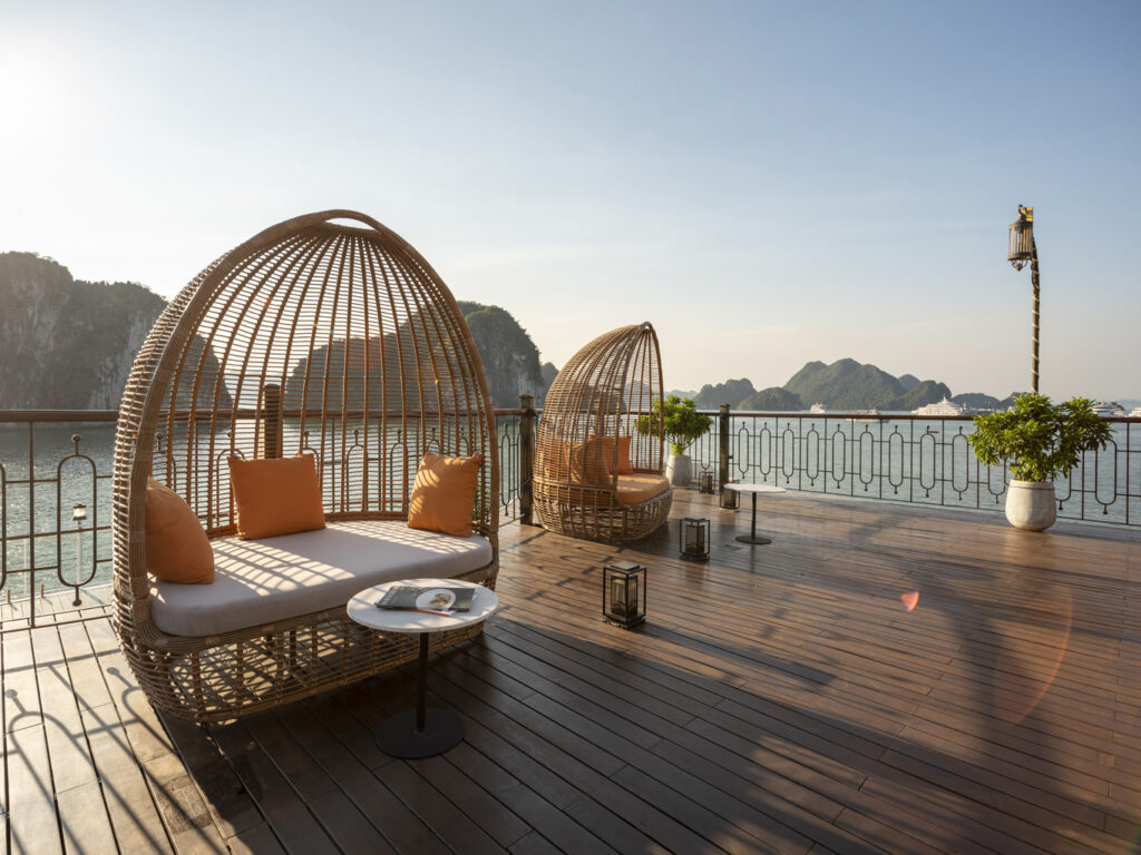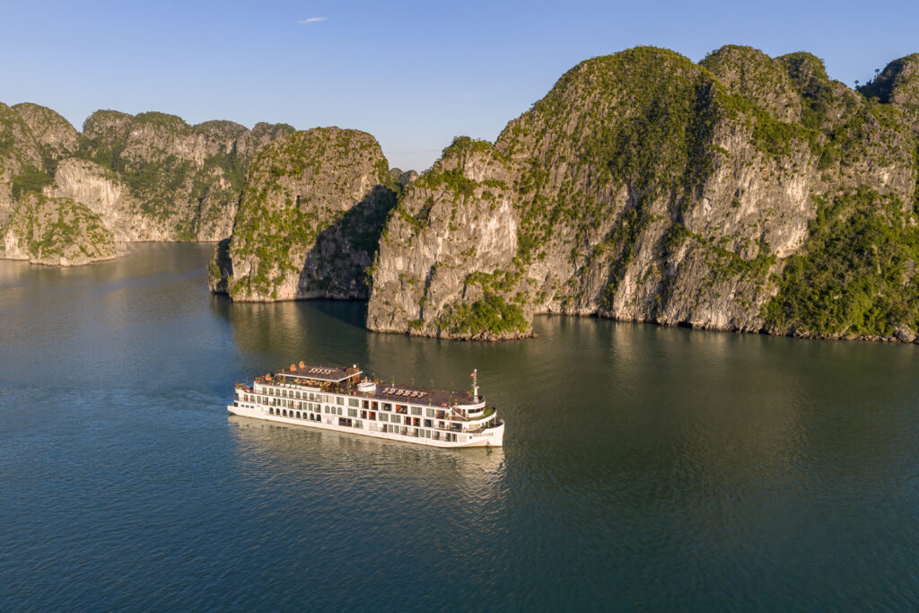 由越南最受尊敬的邮轮运营商之一运营, 印度支那高级37 重新定义五星级邮轮体验 下龙湾 它的 独特的印度支那(东印度支那)设计, 手工艺术, 和 宽敞、以客人为中心的布局. 这艘精品船艇——仅配备 37间布置典雅的客舱, 全部 私人阳台—为眼光独到的旅行者提供亲密、沉浸式的文化体验,让他们在联合国教科文组织世界遗产石灰岩喀斯特地貌中既能感受到宏伟壮丽,又能体验宁静祥和。.