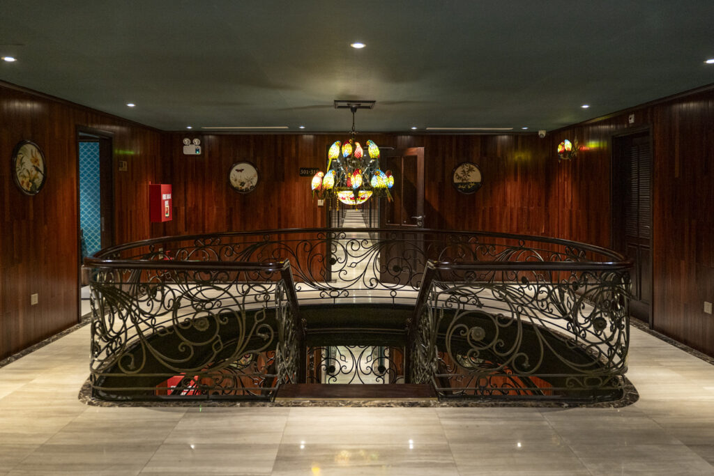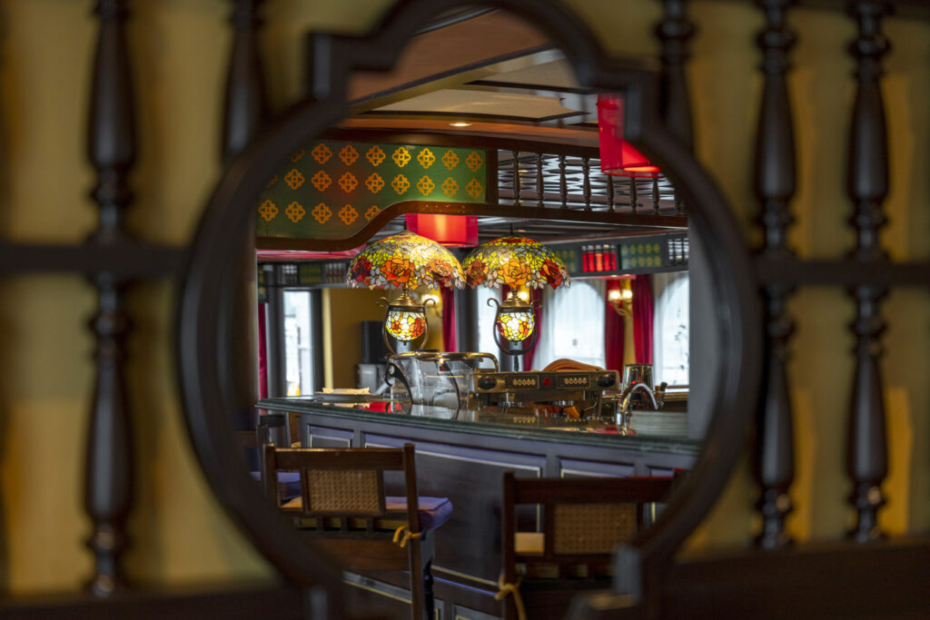 从你踏上船的那一刻起,你就被带入了一个世界,在那里 法式殖民优雅与越南灵魂交融. 每件家具、每一块墙板和每一个装饰元素都是 100% 由越南工匠手工制作, 使用传统漆器、丝绸、硬木和陶瓷——使印度支那高级37号不仅仅是一艘游轮,而是一个漂浮的艺术画廊。.